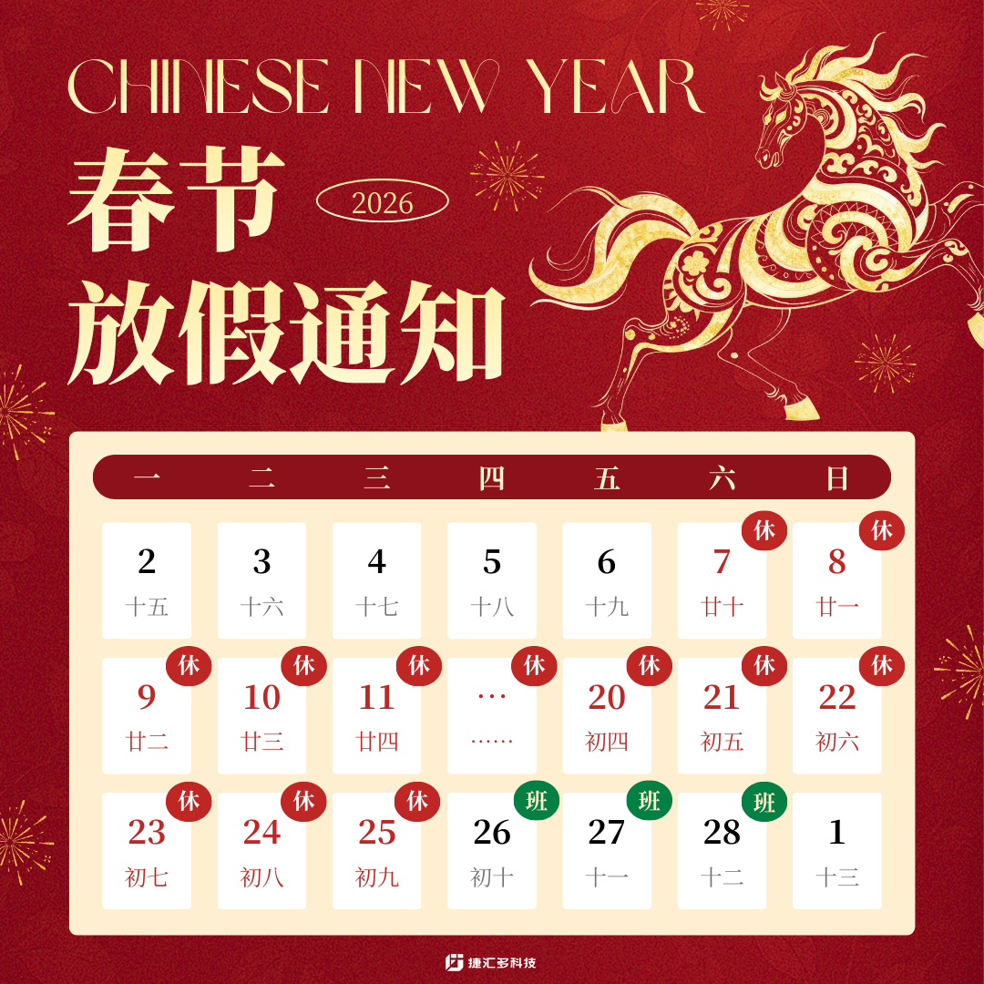 根据国家法定节假日安排,并结合公司实际情况,捷汇多科技春节放假时间如下: