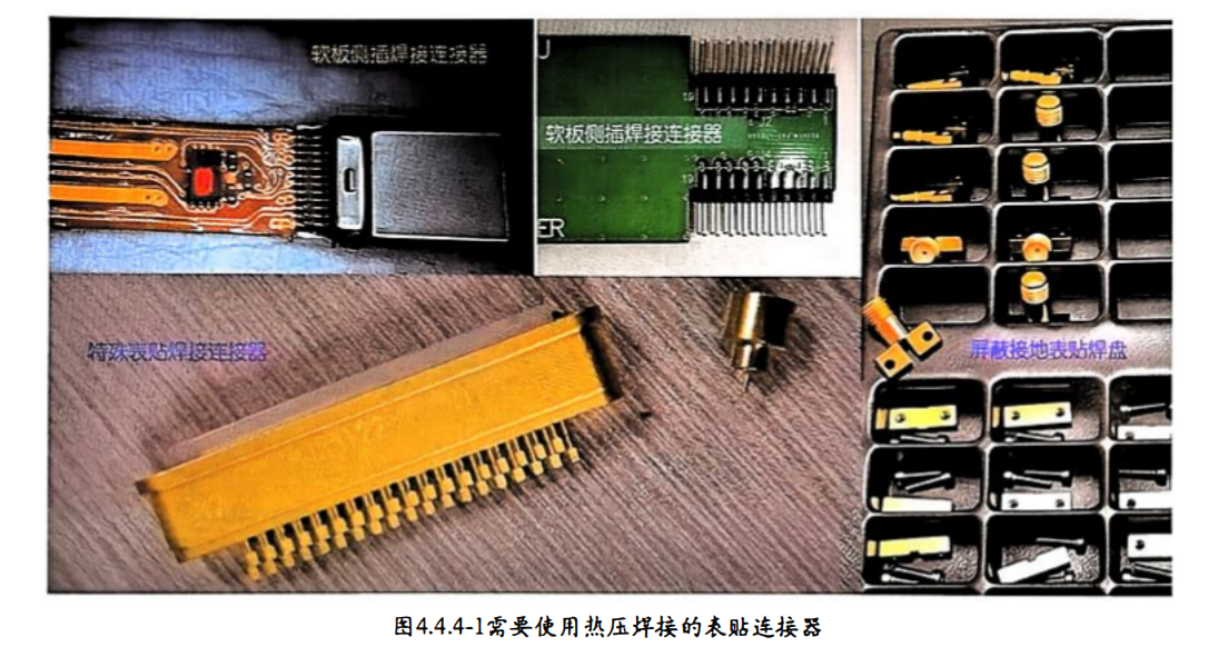 表面贴状焊接的连接器,因产品结构需要或特殊性能需要,连接器焊接需使用热压焊接完成。图4.4.4-1需 要使用热压焊接的表贴连接器。侧插双面焊接连接器是典型的热压焊接工艺 ,但多数企业为了提高效率,制作各种工装改为表贴焊接。部分需要优秀的焊接平整性连接器也需要使用热压焊接。对于大热容表贴焊接连接器,也需要使用热压焊接以确保焊接品质。