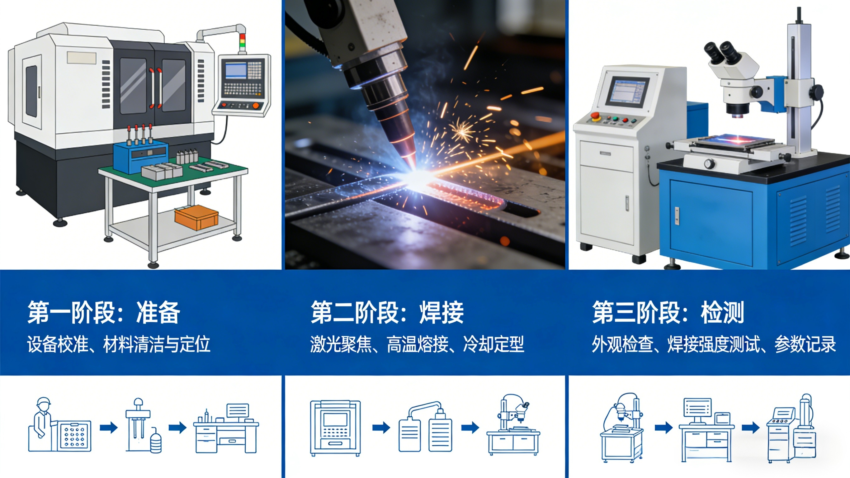 2、焊 接阶段 :使用激光焊接设备对芯片进行焊接 ,通过精确控制激光的能量和焦点位置,实现芯片与基板的牢固连接 ;