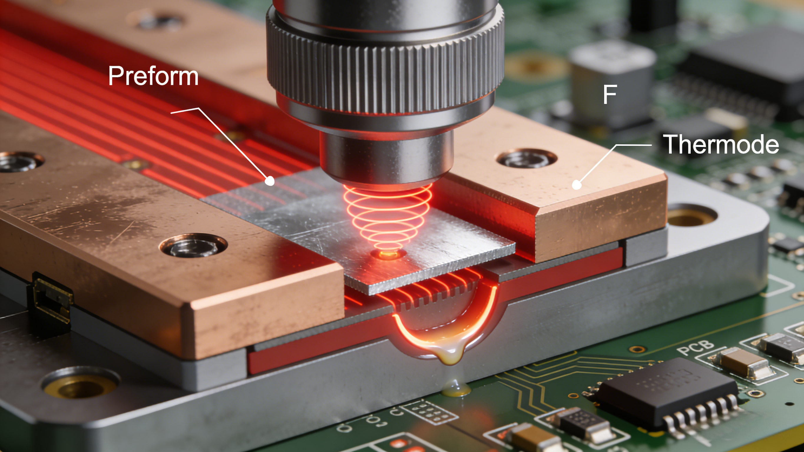 在特殊焊接场景中,热压焊接的适配性还体现在焊接材料的灵活选择上。除了常规焊锡材料外,针对高温工况、高可靠性要求的产品,可选用高温焊锡合金(如锡铅合金、锡银铜合金),搭配焊锡预制片(Preform)精准控制焊锡用量,避免焊锡过多导致的桥连、短路,或焊锡过少导致的焊点强度不足。同时,预上锡机作业可在基板焊接区域提前形成均匀的锡层,减少焊接过程中焊锡的流动偏差,进一步提升焊接平整度与一致性,尤其适用于批量生产中的标准化作业,降低人工操作误差,提高生产合格率。